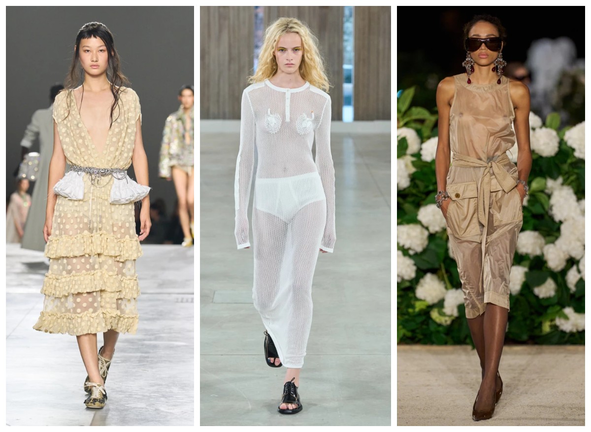 Полупрозрачность – один из самых смелых трендов сезона весна-лето 2026. Однако, в этом сезоне дизайнеры проявили деликатность через многослойность и игру фактур. Полупрозрачные платья создают эффект воздушности и легкости. Если вы стесняетесь носить их поверх белья, то вы смело можете носить их с базовыми комбинациями, поверх шорт и топов, с длинной футболкой.
