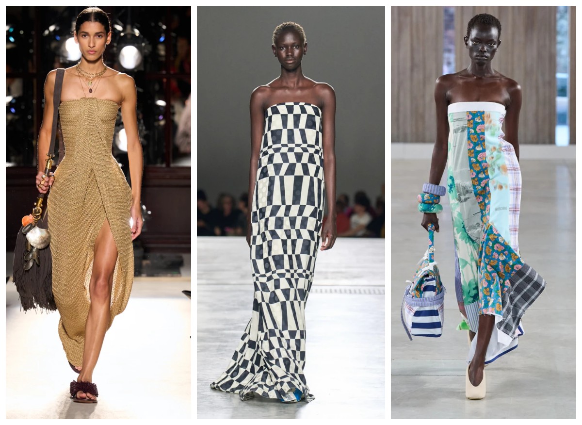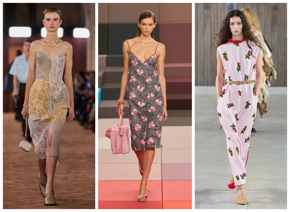 Разбирая основные тренды жаркого сезона, мы вас предупреждали, что бельевой стиль будет актуален не только в женской, но в и в мужской моде. Минималистические комбинации на тонких бретелях, шелковые и атласные ткани, соблазнительное кружево – все это создает эффект естественной сексуальности и даже наивности. И вот вам и доказательство, платье в бельевом стиле легко стилизовать, как для города, так и для вечернего выхода. В коллаже образы из коллекций Fendi, Moschino и Nanushka.