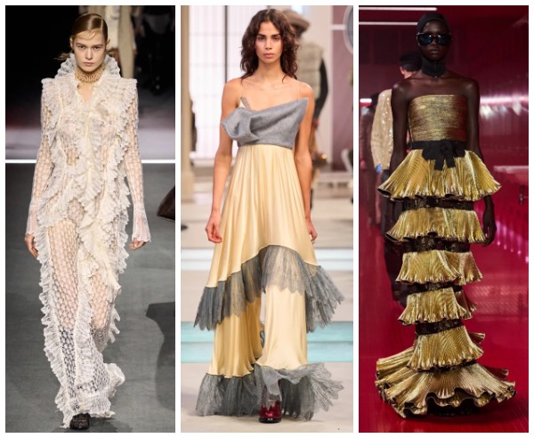 В моду постепенно возвращаются рюши и воланы. Их можно смело внедрить в свой праздничный образ. Опять же, чтобы придать образу легкости и женственности. Лучшие варианты предлагают Valentino, Stella McCartney, Louis Vuitton и Christian Dior.
