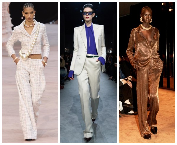 Проще всего – это выбрать для себя стильный брючный костюм, например из коллекции Chanel, Schiaparelli или Tom Ford. Если вы хотите спокойный образ, то выбирайте между первыми двумя, если хотите ярких акцентов, то рекомендуем последовать примеру Tom Ford и выбрать костюм спокойных оттенков, а блузку или рубашку выбрать яркого цвета.